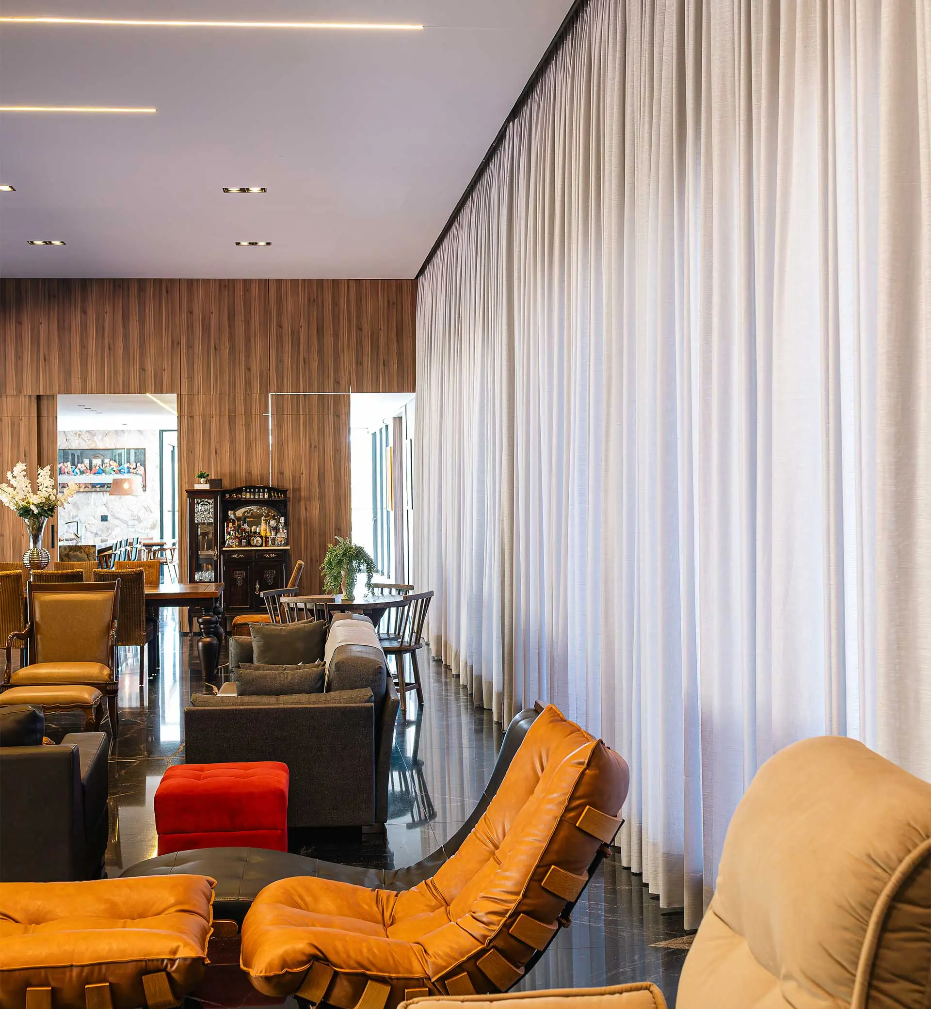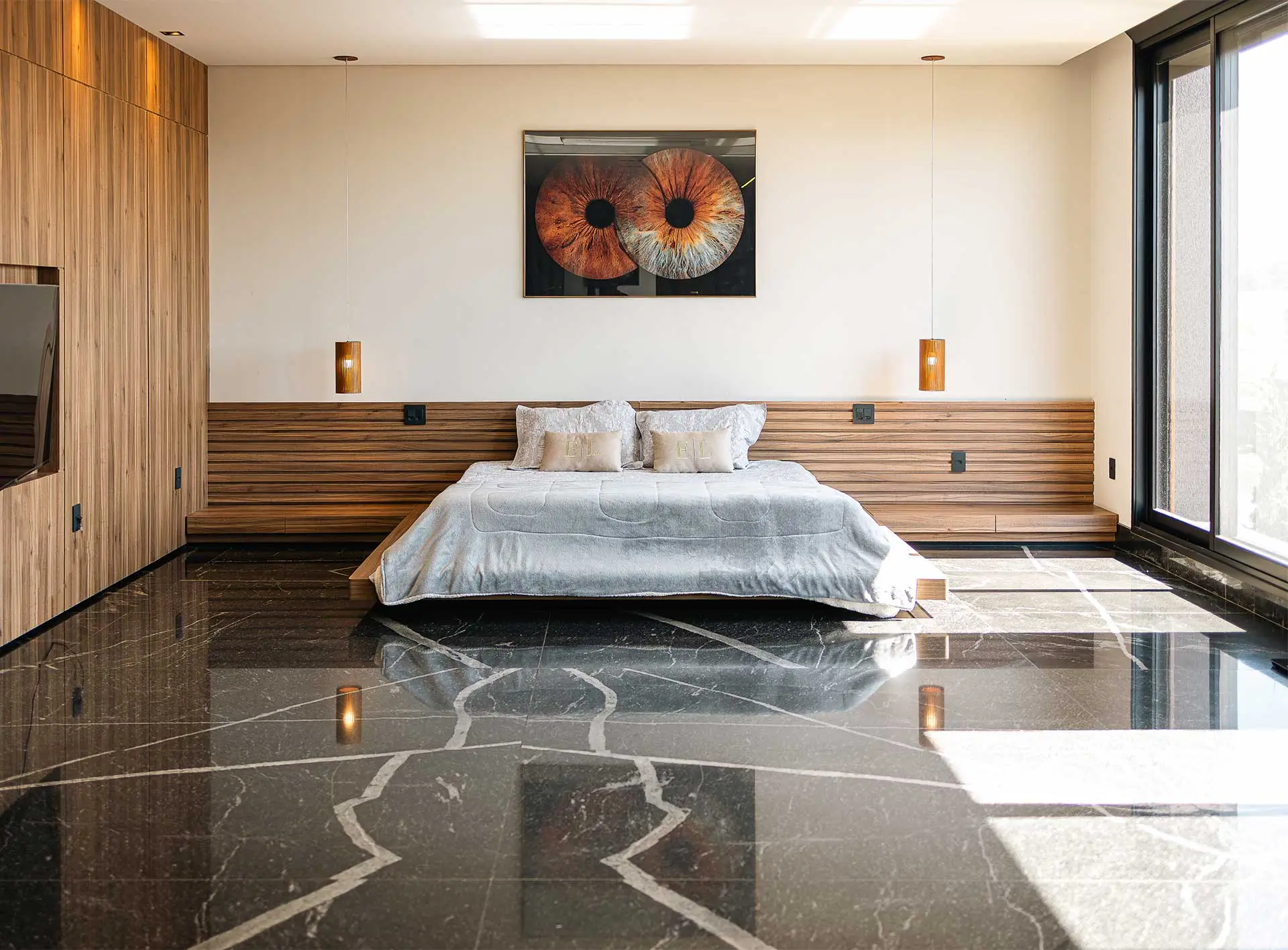 Suítes espaçosas (superiores a 20 m²), closets, ar-condicionado embutido no teto e persianas automatizadas.